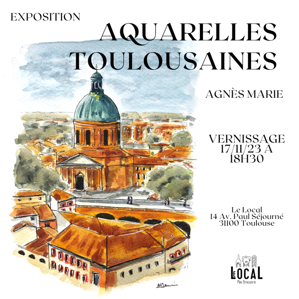 Retrouvez mes aquarelles exposées au Local – Microbrasserie, 14 avenue Paul Séjourné à Toulouse, entre novembre 2023 et janvier 2024.