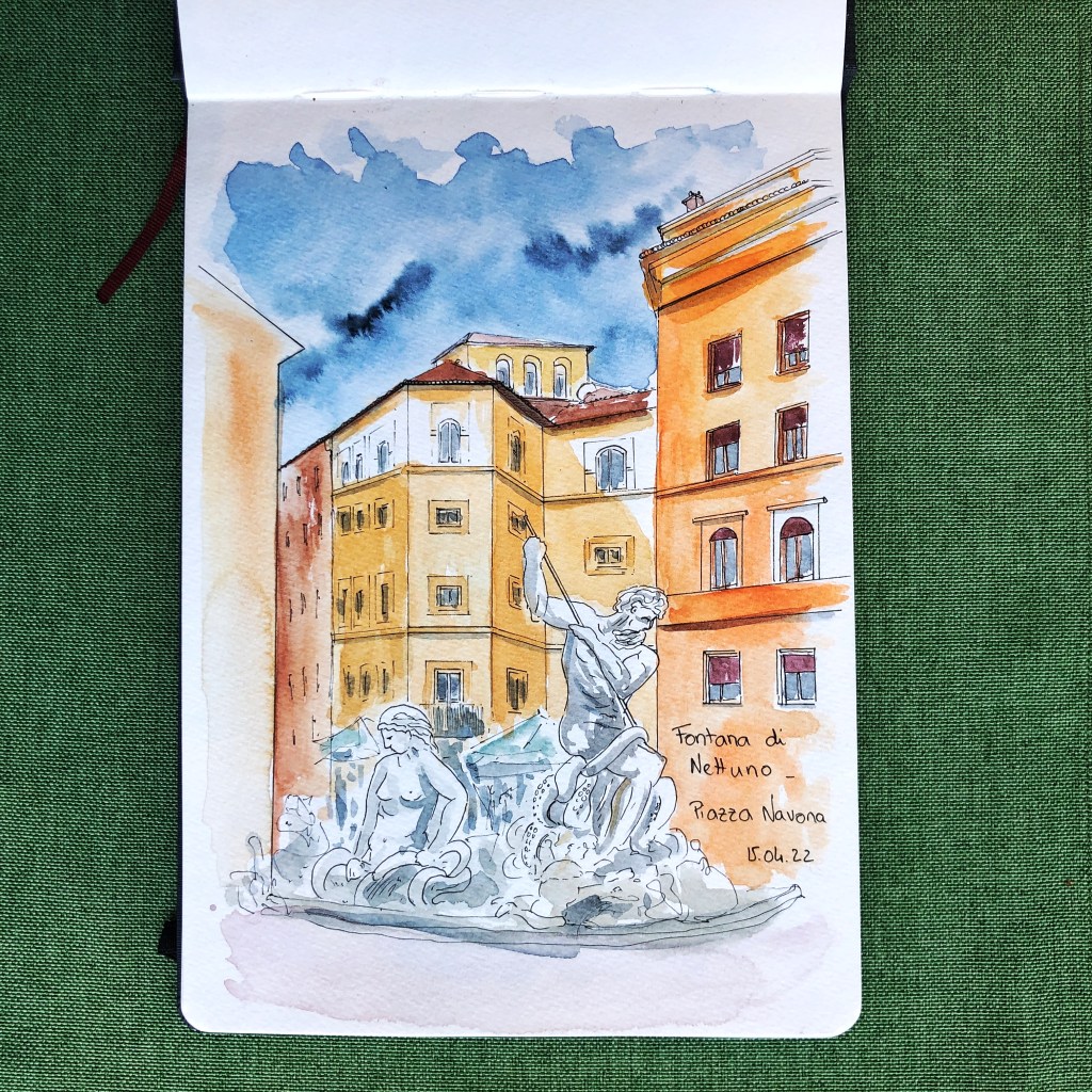 Deuxième arrêt dessin sur la place, devant la fontaine de Neptune.
