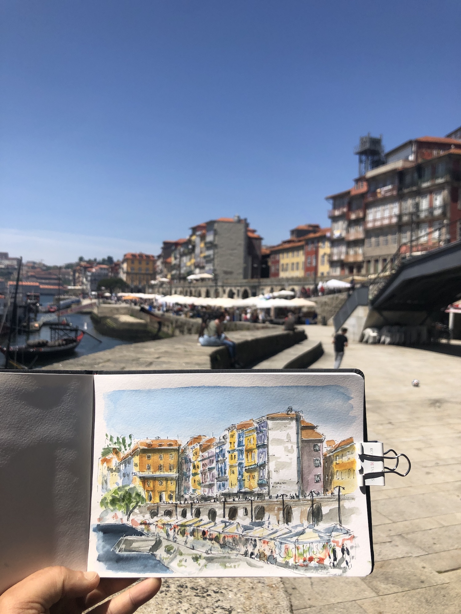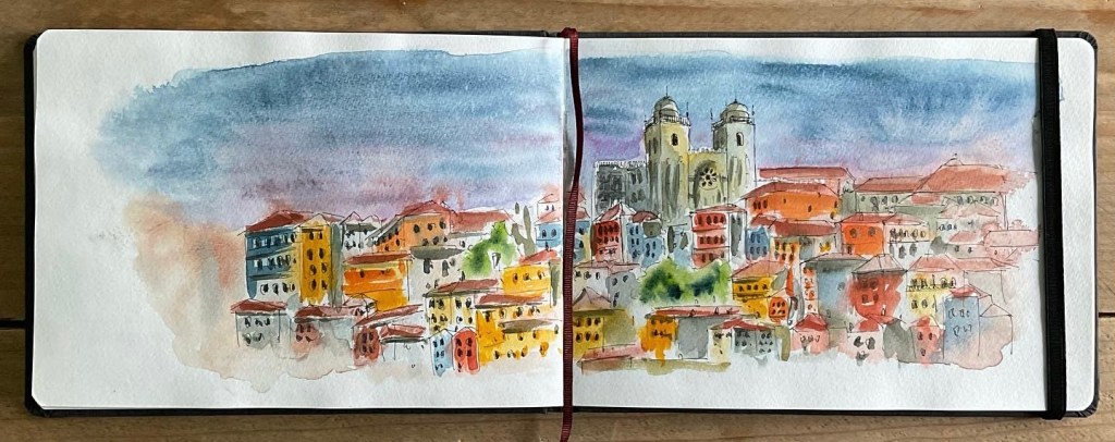 De bon matin, direction le quartier Vila nova de Gaia et le Jardim do Morro. Les Urbans Sketchers de Porto s’y réunissent et j’en profite pour croquer en bonne compagnie et discuter un peu avec eux.