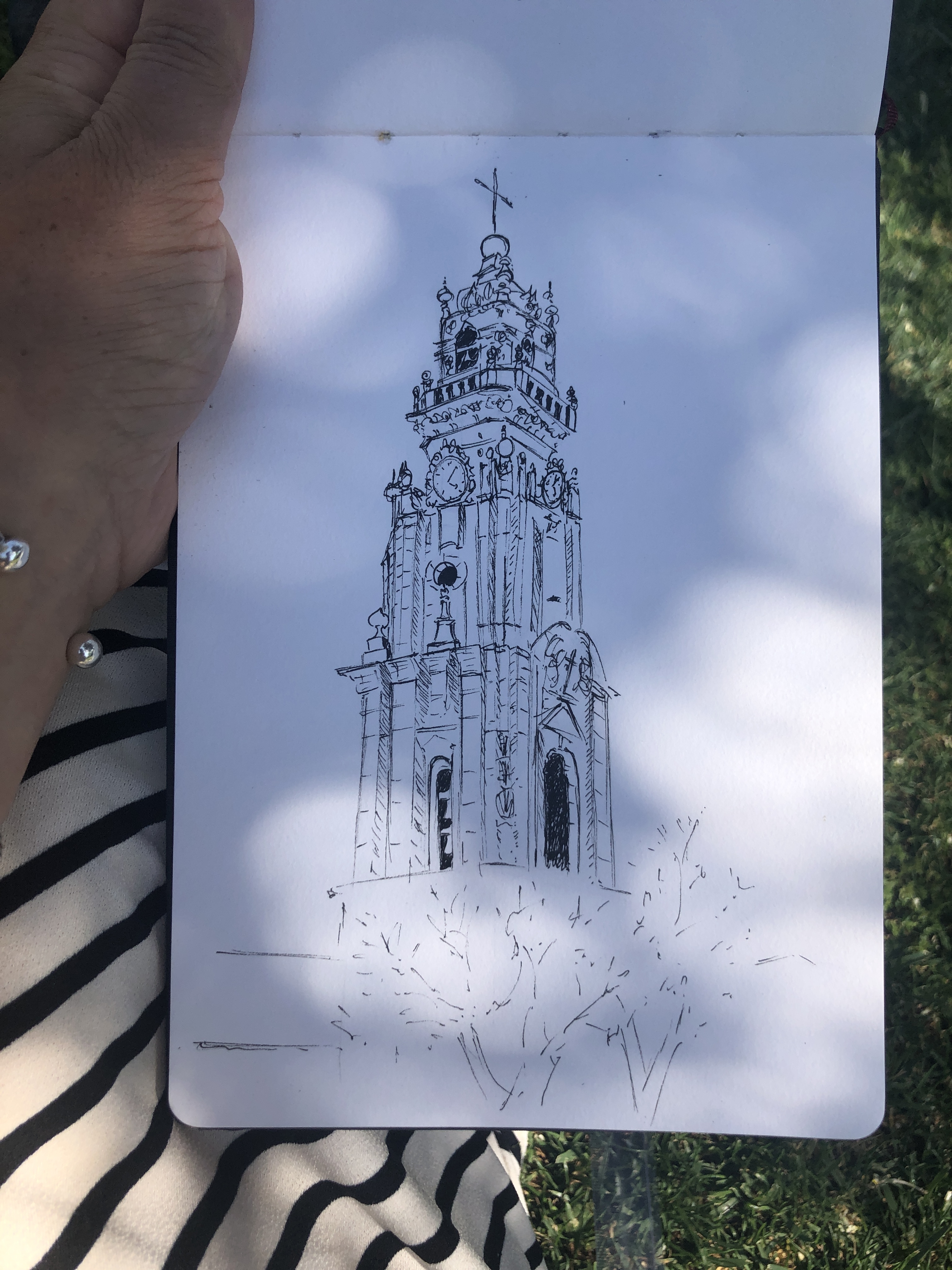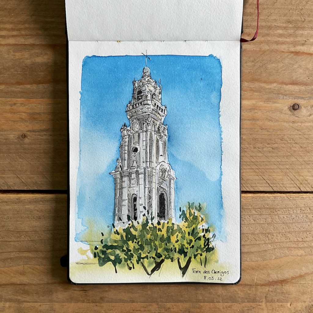 Dans l’après-midi, nous flânons à nouveau dans les rues, un peu au hasard, mais en direction de la Torre dos Clérigos que j’ai très envie de dessiner !