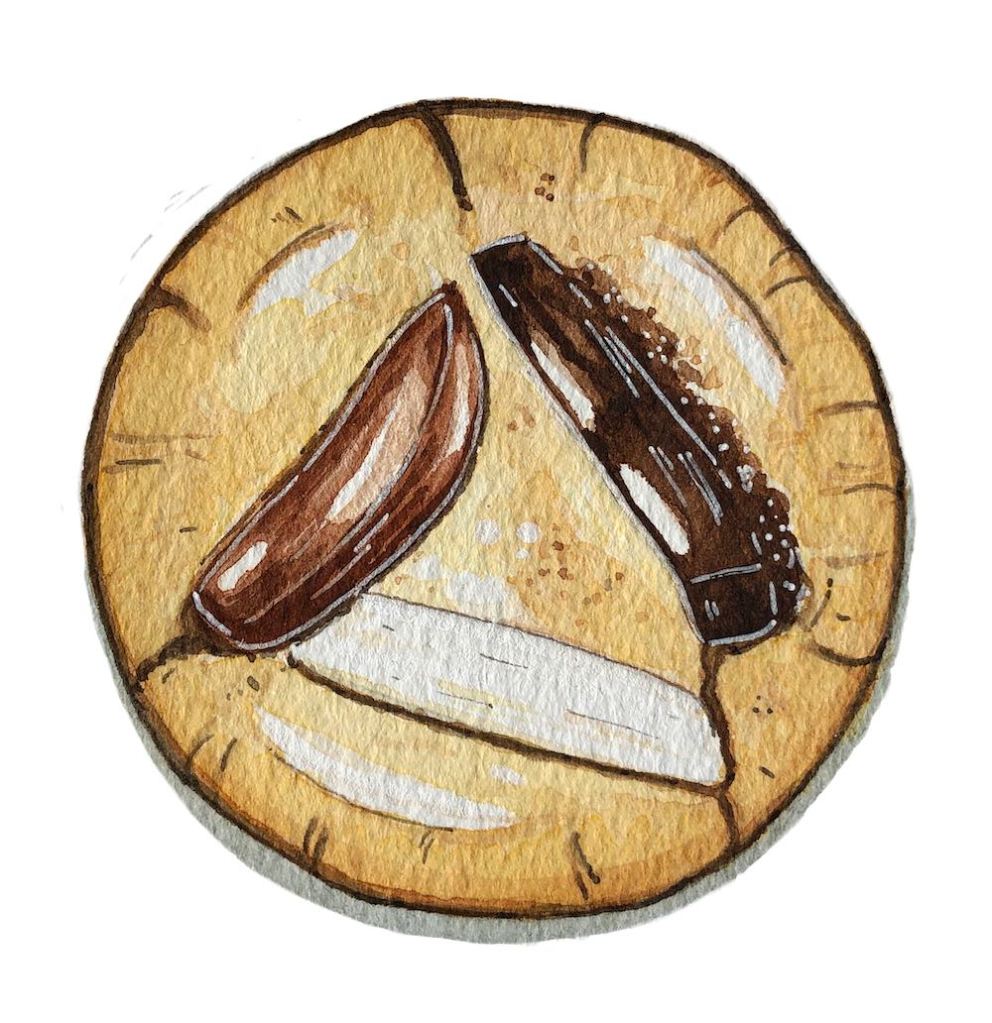 Depuis 2020, je crée régulièrement des illustrations pour l’entreprise Scoop Me a Cookie, basée à Paris. Je réalise, sur commande, des illustrations à l’aquarelle et encre de gâteaux et ingrédients.